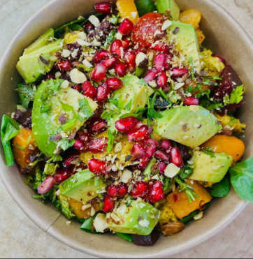 quinoa , tomates, avocat , grenade, patate douce , mache , coriandre choux fleur rotisvegan bowl a la patate douce, quinoa avocat grenade12,50 €PrixQuantité*Ajouter au panier